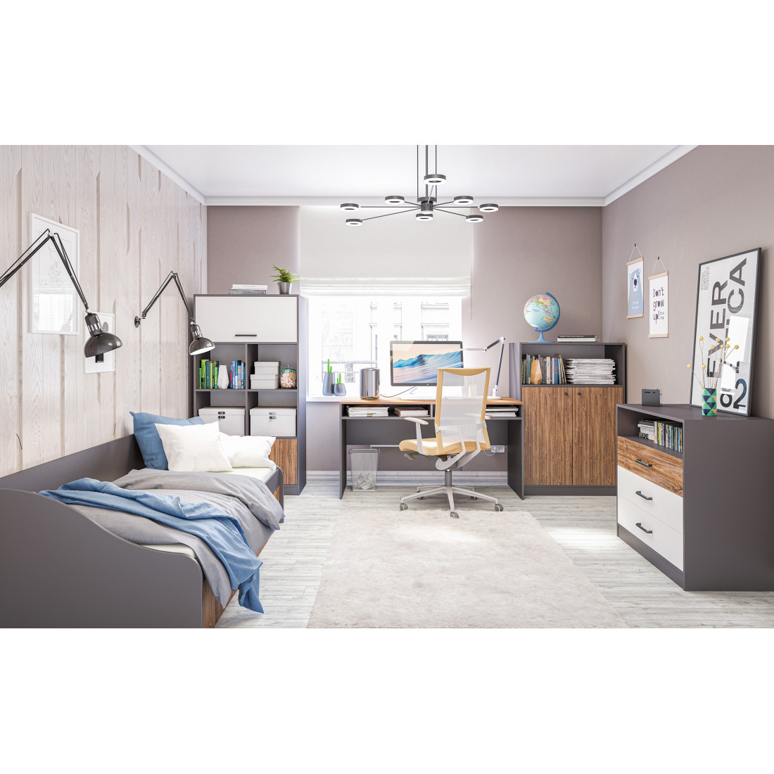 Коллекция Мальма для молодежной комнаты создана, исходя из последних веяний минимализма, которые так ценят люди, идущие в ногу со временем.