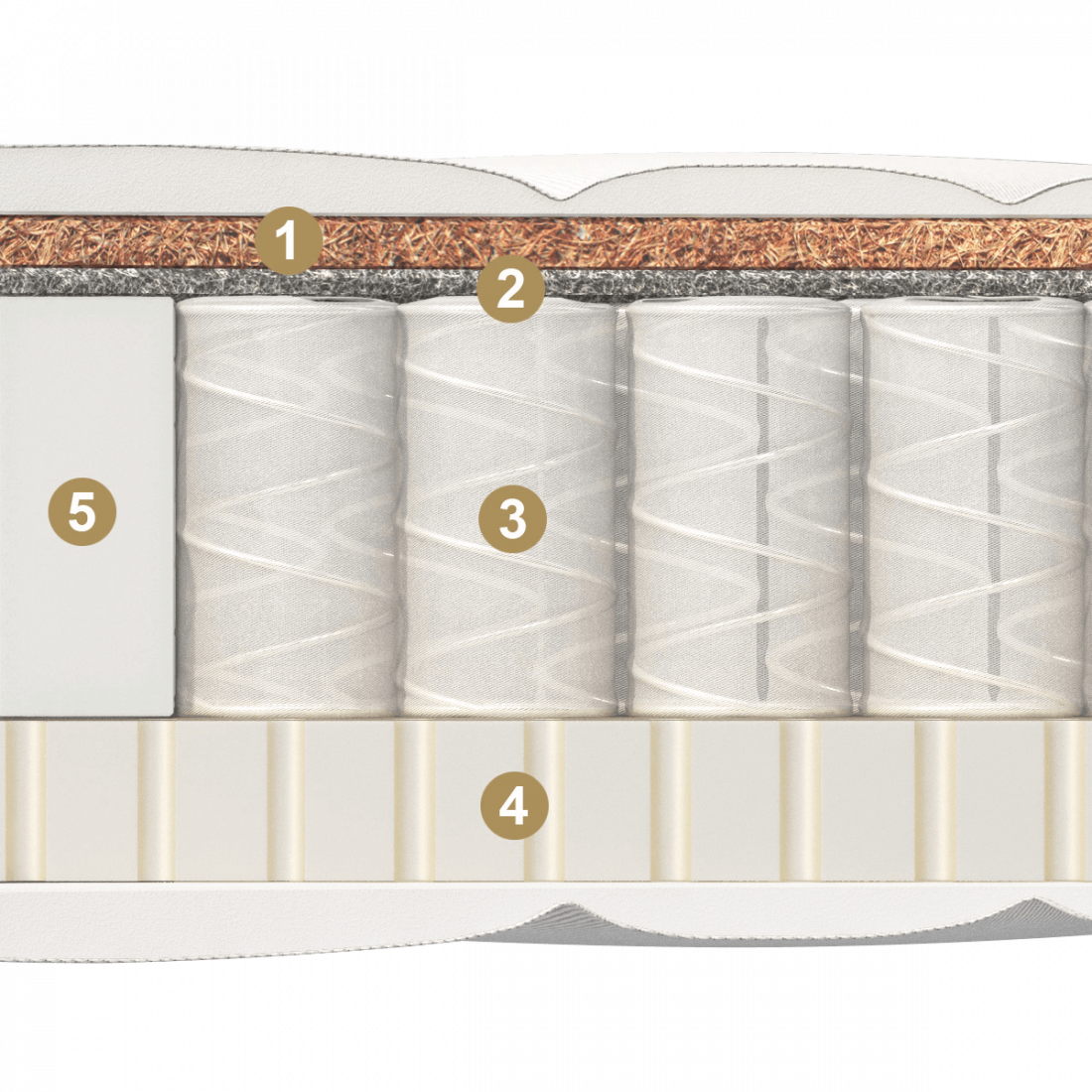 Одна из сторон является умеренно жесткой, содержит прослойку из кокосовой койры и подойдет для тех, кому важна максимальная упругость и ортопедичность, полезная для правильной осанки.
