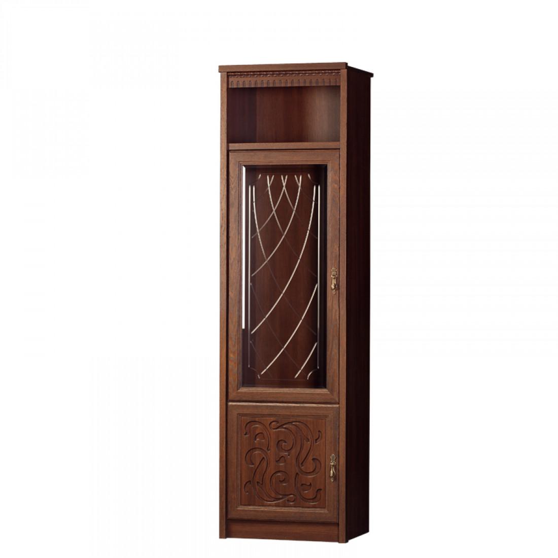 Фасады: МДФ, декор – дуб оксфорд, патина, зеркало с фацетом